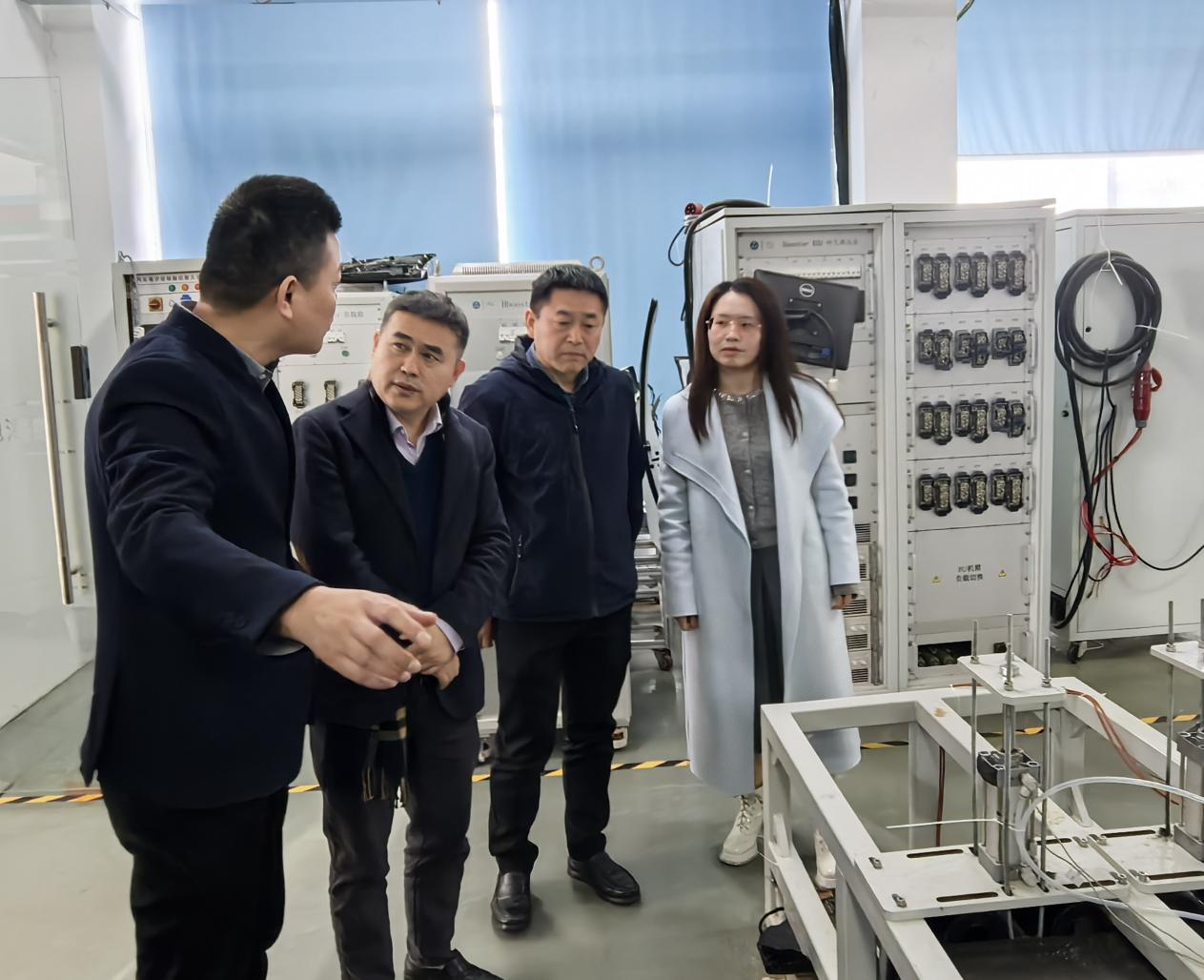 座谈会后,李曾带领张大伟一行人员参观了颐昊的实验室和调试研发部门,详细介绍了企业在车辆工况模拟、通信测量、车载显示系统、灯光照明系统、电池充电系统、安全带测试系统等领域的检测装备和典型应用场景。特别引人注目的是安全带全工况测试系统,这是一款打破国外垄断、完美实现国产替代的高端检测装备,具有鲜明的创新特性。双方围绕相关技术进行了深入交流,为后续合作打开了思路。