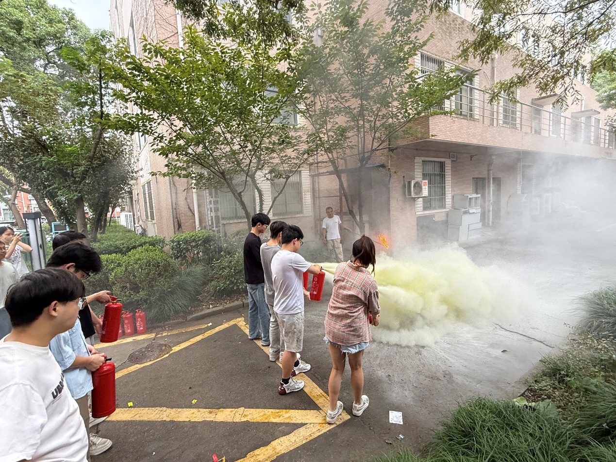 疏散演练结束后,活动进入第二部分——消防器材使用培训。学校保卫处专业消防人员为师生们现场讲解并演示了干粉灭火器的正确操作步骤与使用要领,强调了“提、拔、握、压”四字口诀。在认真聆听讲解后,师生代表们在消防员的指导下,分批进行了灭火器现场实操演练。大家踊跃参与,亲身体验了如何正确扑灭初起火情,在实践中巩固了理论知识,掌握了关键的消防技能。